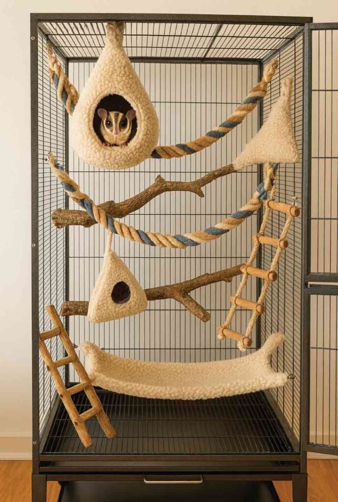 Sugar gliders require huge vertical enclosures, not small critter cages.